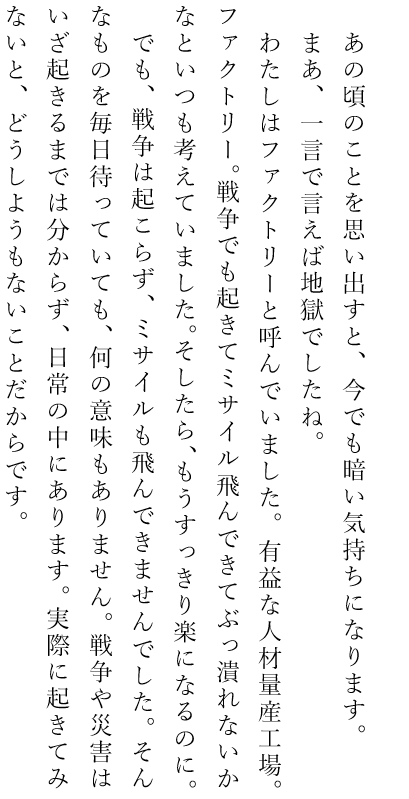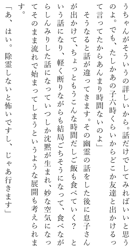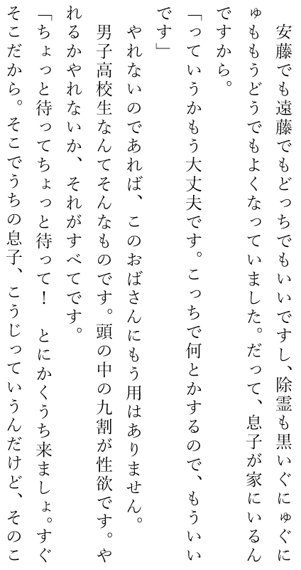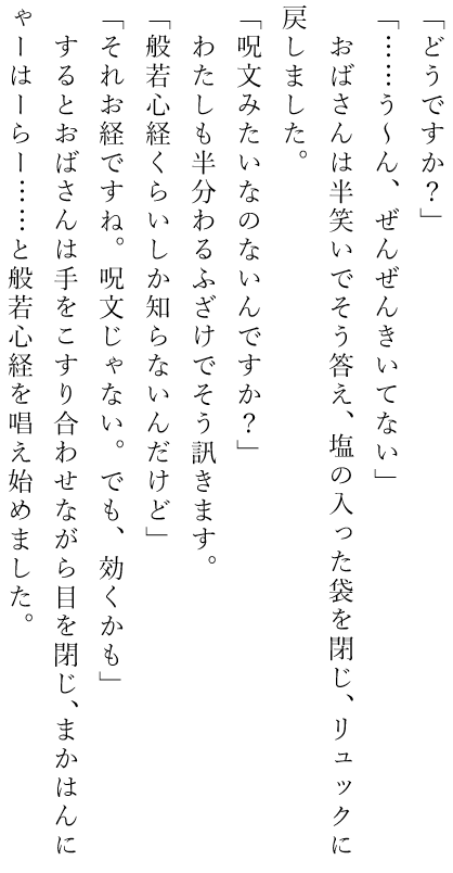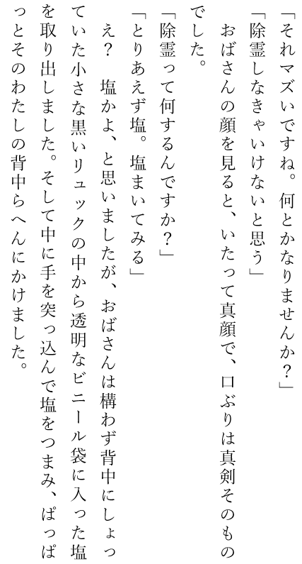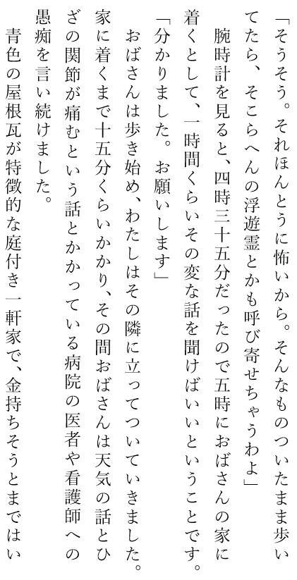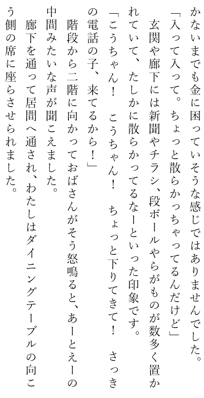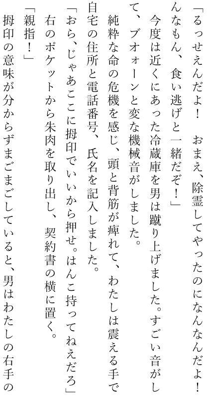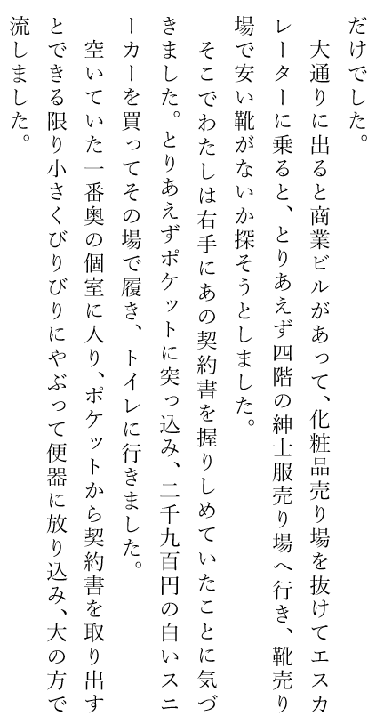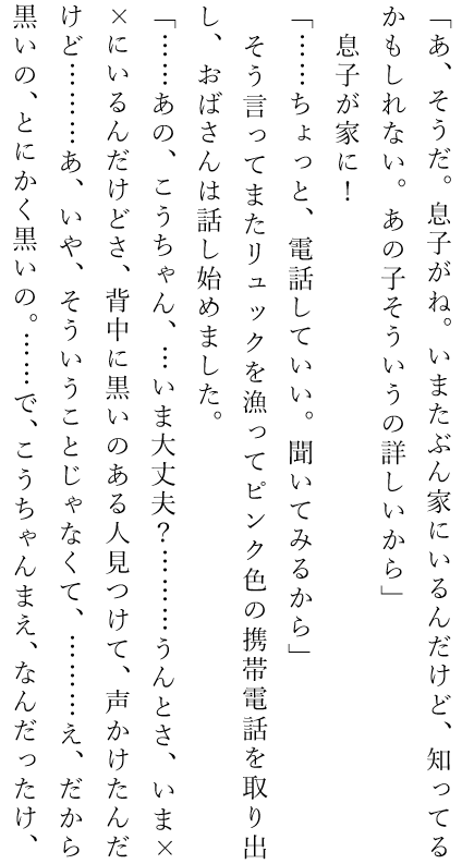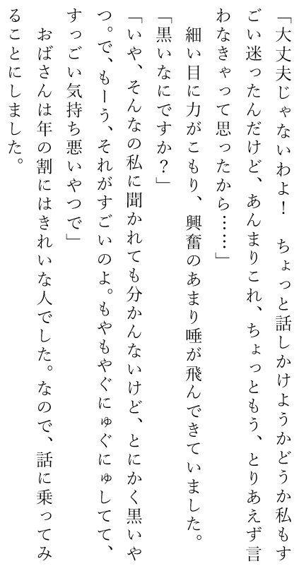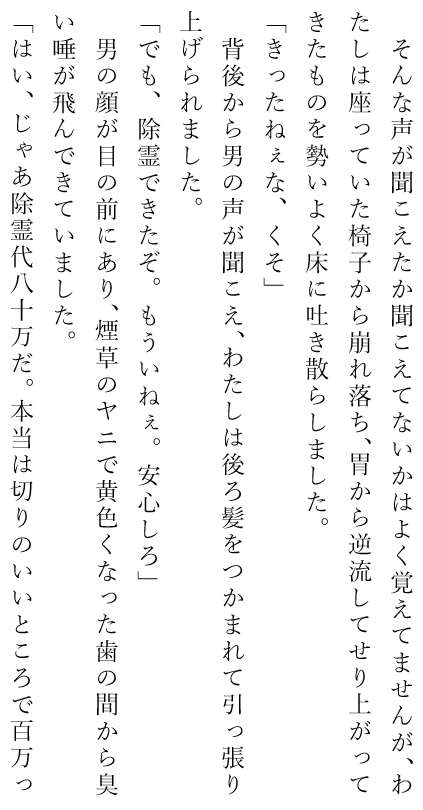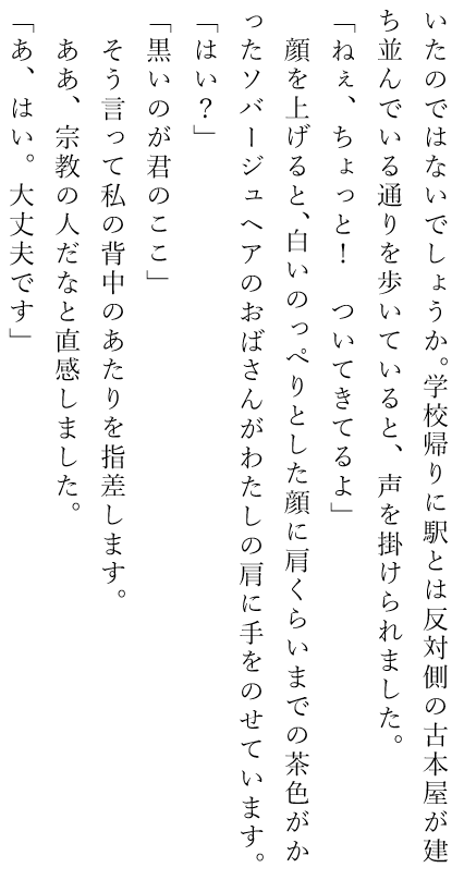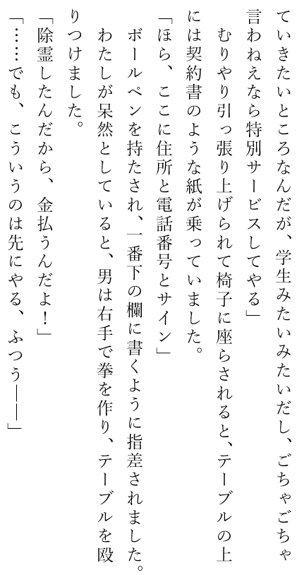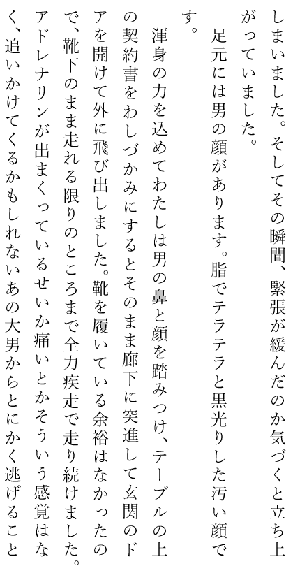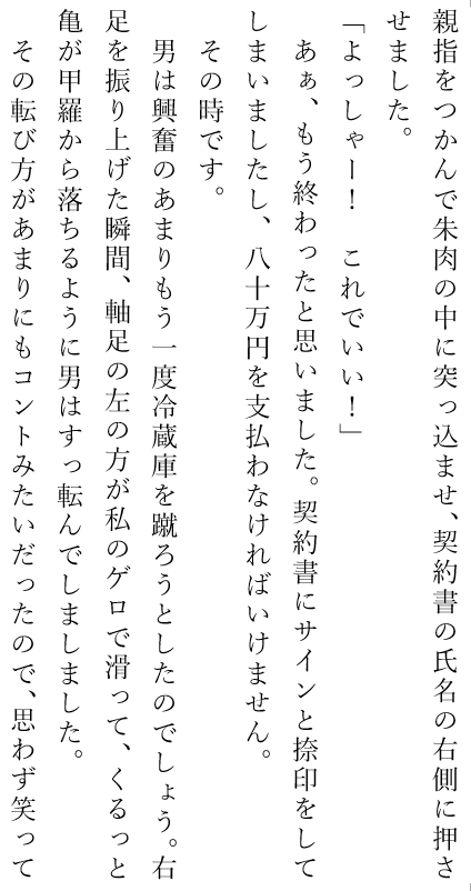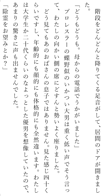 と言って男は軽く笑い、詳しくは面接の時に、ということになった。明日の十一時に面接を受けることになり、男は最後に広田と名乗った。